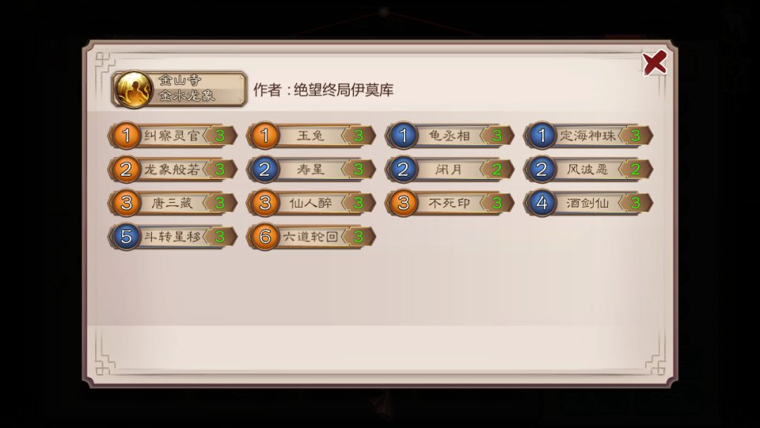 主要打法:茍,打牌库差。(有定海神珠和斗转星移加速不用打很久)