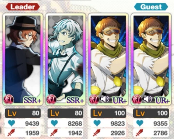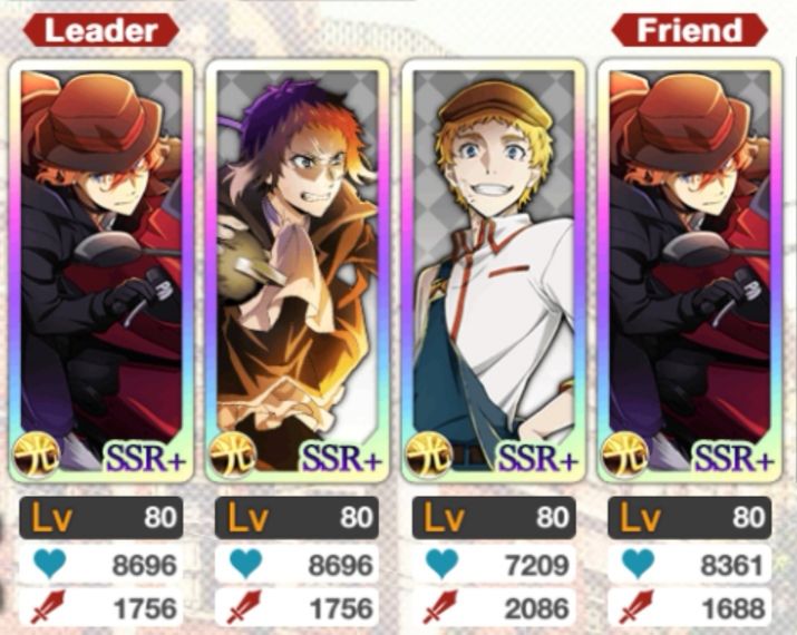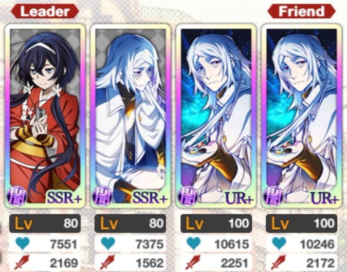 相对而言,留给暗队的角色选择不多了(主要问题是本人暗角色不多),而且本身暗队相对较弱。在保证一命通关的前提下,尽可能提高攻击力。最终阵容如下:DA镜花队长技能提高暗属性60%攻和40%生命,主动技能可恢复50%生命和两回合中降低50%伤害,其余皆为龙头涩泽,主动技能可提高两回合60%或80%攻击力。