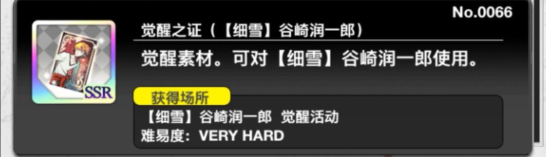 本次觉醒角色为SSR【细雪】谷崎润一郎,可通过获取素材使其觉醒为UR。