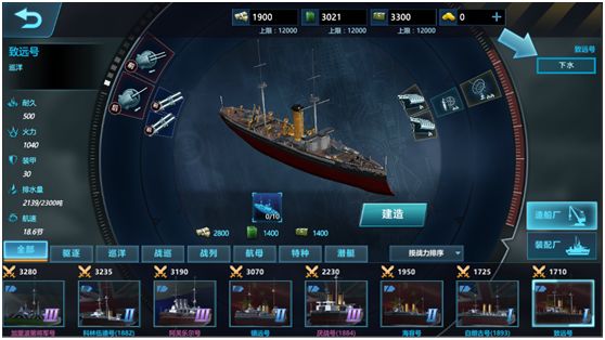 海战的主体是战舰,在收集到足够的图纸、装备和资源以后,就可以在造船厂建造自己的战舰船体。