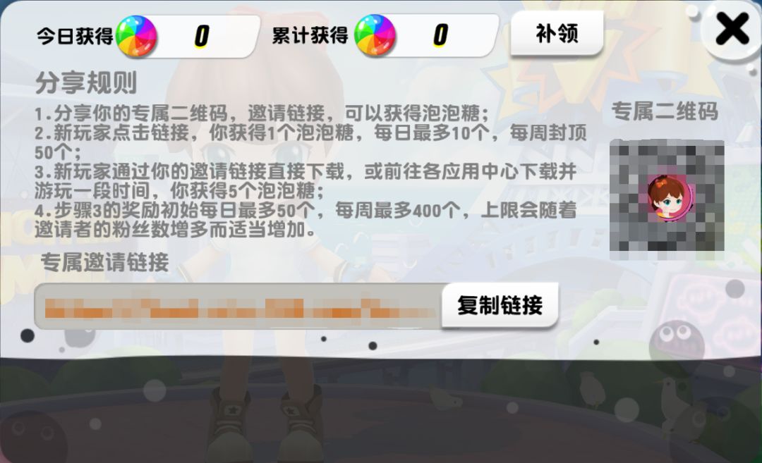 根据上述规则,只要大家能够积极地向小伙伴们宣传游戏,就会很快获得相当多的泡泡糖啦!以下方式都可以让达人们的小伙伴顺利链接到专属分享页面: