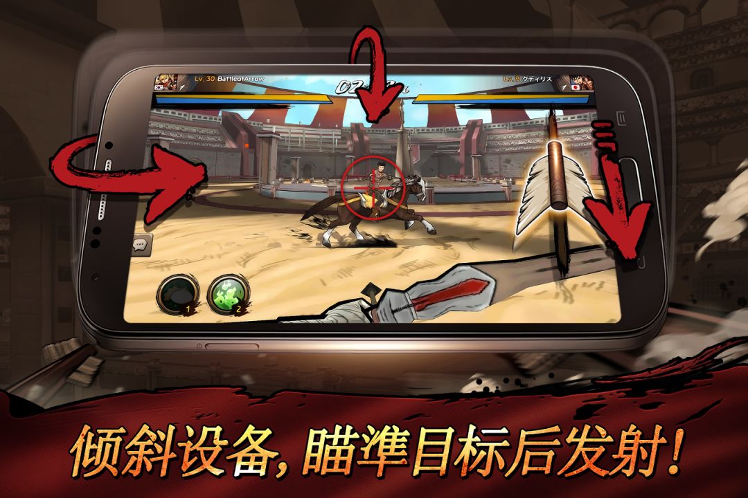 游戏的操作得以简化,玩家需要用手指拉起弓箭,随后通过游戏搭载的陀螺仪功能,倾斜设备实现瞄准,松开手指即可射出箭矢。
