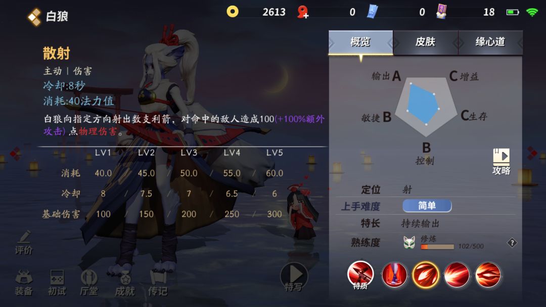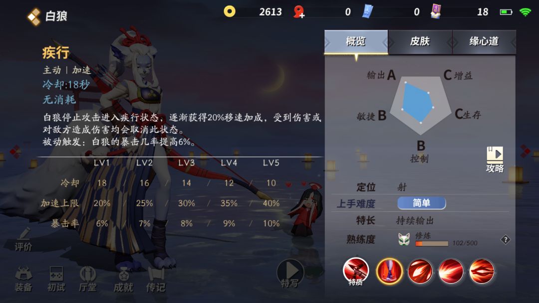 破灭 白狼很脆 很多式神比他血高 提高输出