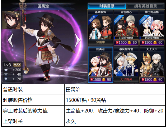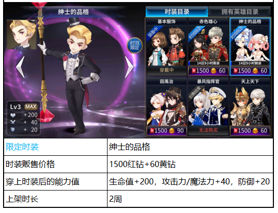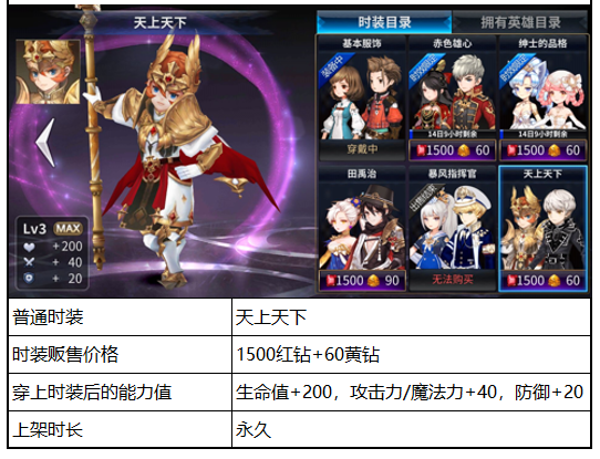- 本周新增孙悟空五套时装:赤色雄心、绅士的品格、田禹治、暴风指挥官、天上天下。完成孙悟空专属任务后即可获得孙悟空“暴风指挥官”限定时装。