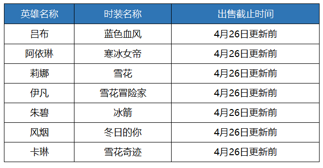 - 冬季回忆限定时装与吕布“蓝色血风”时装出售结束