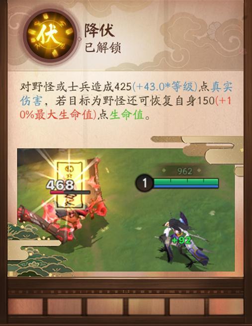 降伏:加强自身对野怪伤害,同时提供购买野刀条件。