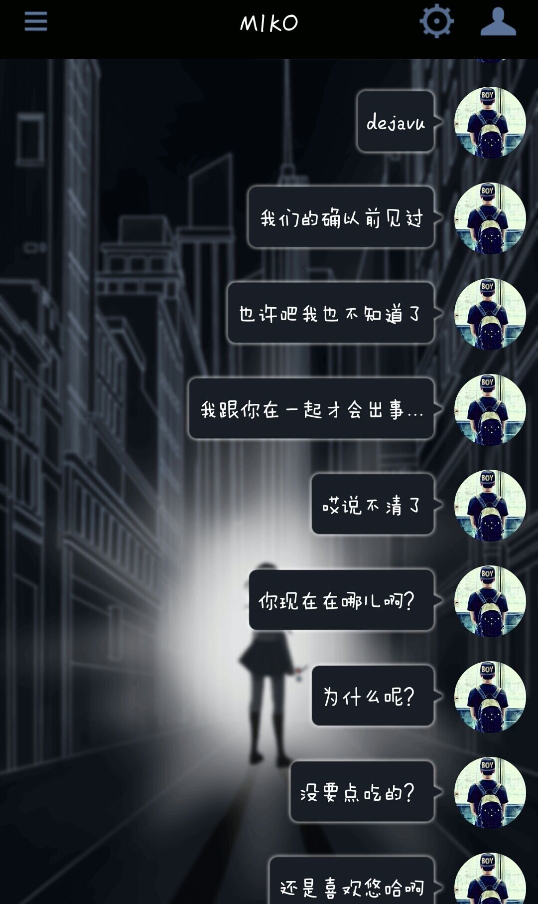 关于程序退出再进入后,Miko对白消失(如下图)还有剧情对话循环的Bug,我们预计在下周末出一个新版本修复。版本更新后APP内会有新版本更新提示,请注意替换安装即可,之前的游戏数据会保存。