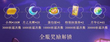 2.全服“祈愿”达到一定次数,即可解锁不同阶段的全服奖励,所有巫女大人均可获得全服奖励。
