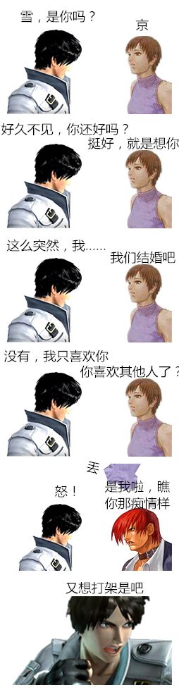 专注于提升武艺的草薙京并没有察觉到愚人节的到来,今日还是一如既往的在家里进行锻炼,这时一名少女来到了他的面前,居然是他的女友——雪。