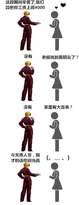 每年的4月1日愚人节这一天,人们喜欢以各种方式来互相欺骗和捉弄身边的人,只要你的谎言不是太过分,没有人会去怪罪撒谎者,反而还会送上一句“666”。《拳皇世界》的格斗家们也有不少撒谎好手,来看看他们这一天都干了啥?