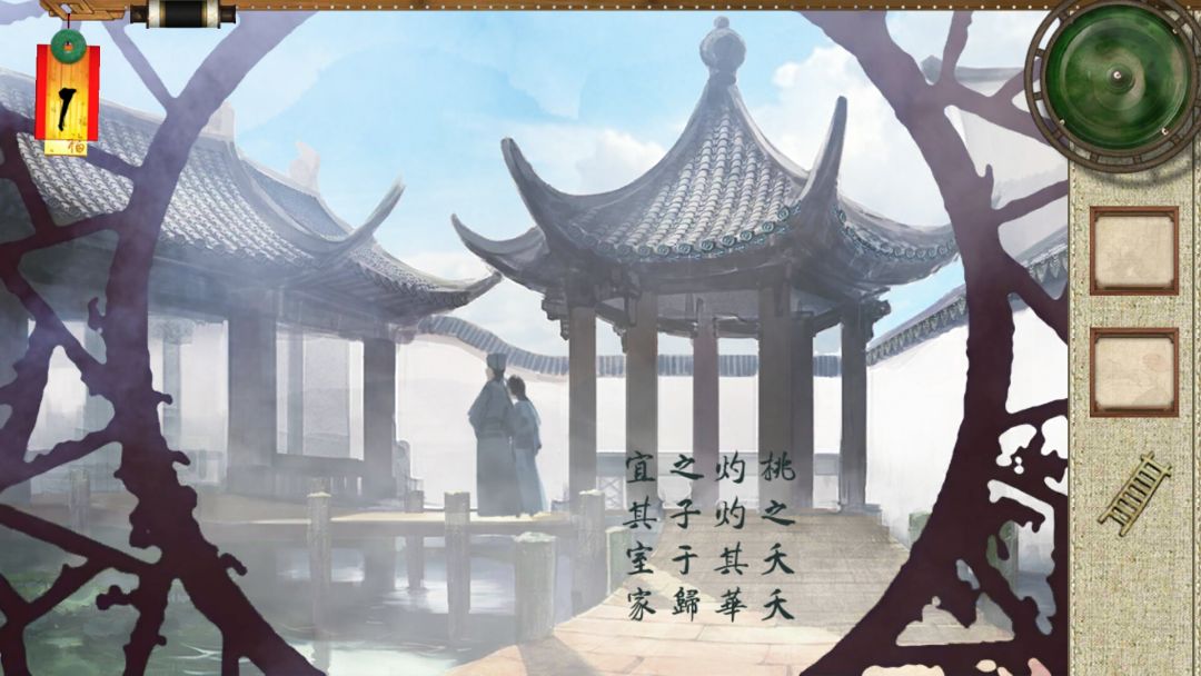 左边瓷缸得到画卷,根据这个画卷,摆左侧的书,即可得琴谱晴大厅桌子上得到空碗琴弦,雨大厅左边有琴,得到鱼线,琴弦修好琴,