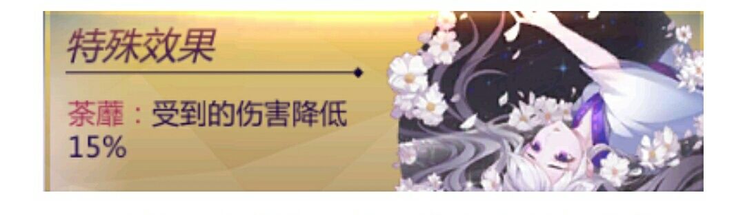 特殊:荼蘼(受到的伤害降低15%)