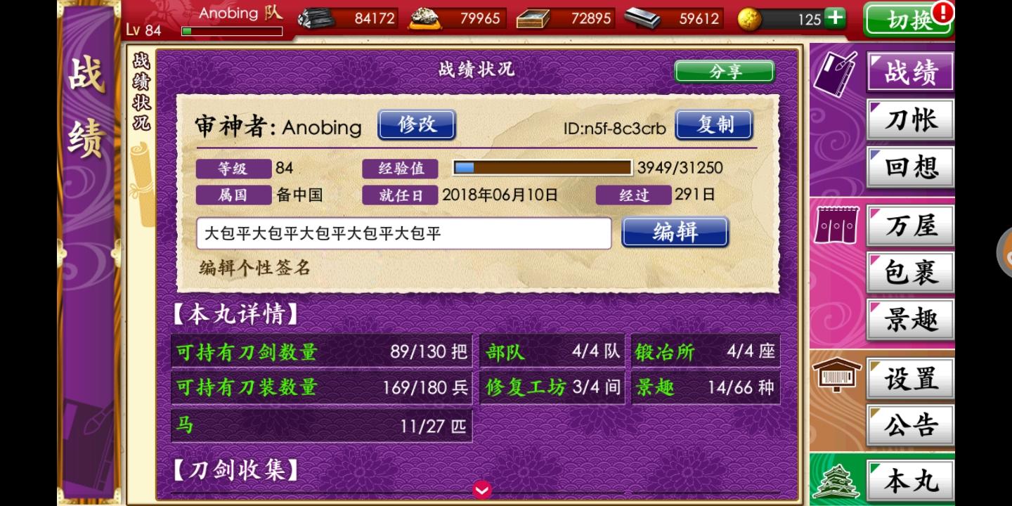 中间也因为要高考退坑了4个月,回坑刚好碰上新刀刀入锻刀池,连续出了以前没有的刀刀,也锻到了第一把爷爷(ง •̀_•́)ง,现在在努力刷活动~~~婶婶们一起加油吧~~~~