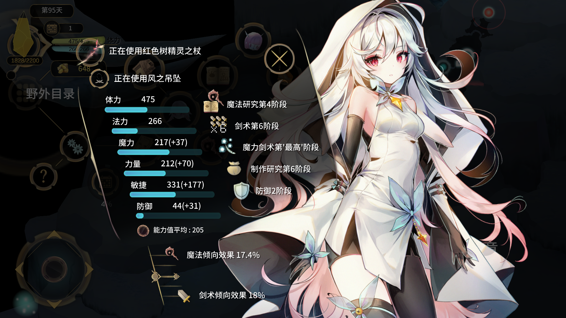 这是我的小存档里角色属性,对于介绍这种玩法的话……属性略高了一点。