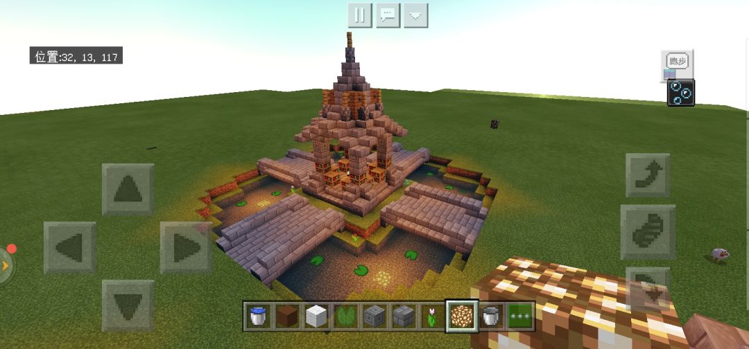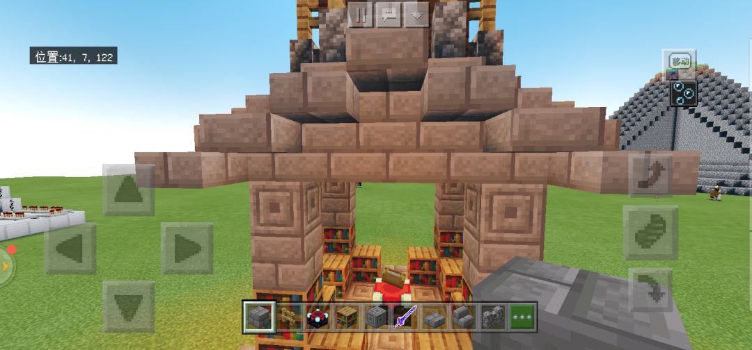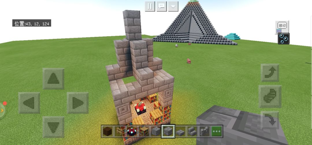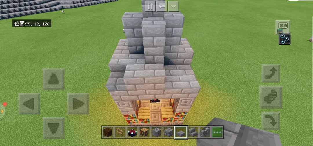 再靠内放置三块石砖,最外面放一块石砖台阶,可以以左边和右边做比较。