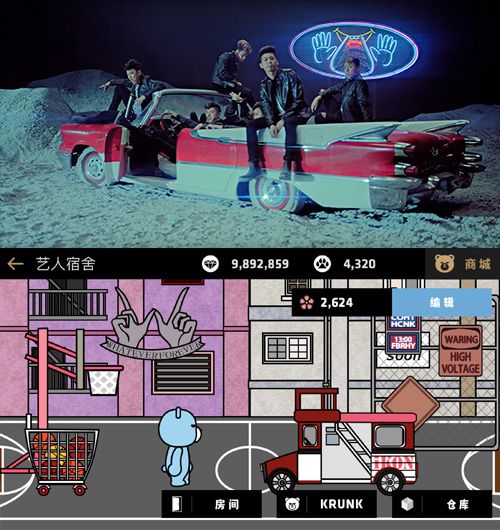 根据iKON MV场景定制的全新家具今日上线,《What's Wrong》MV里具有代表性的篮球场、障碍牌,《DUMB&DUMBER》里的赛车、灯牌等,大家可以自由布置,将多个MV里的元素放到一起,或原装还原MV里的场景。