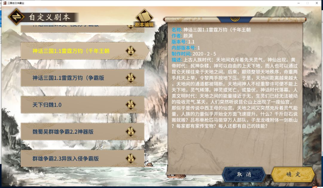 新剧本来啦,这次是神话版三国剧本,灵气复苏所有武将,军队,兵器力量提升,1885个武将人人都有宝物和特技还有新加了95件神兵