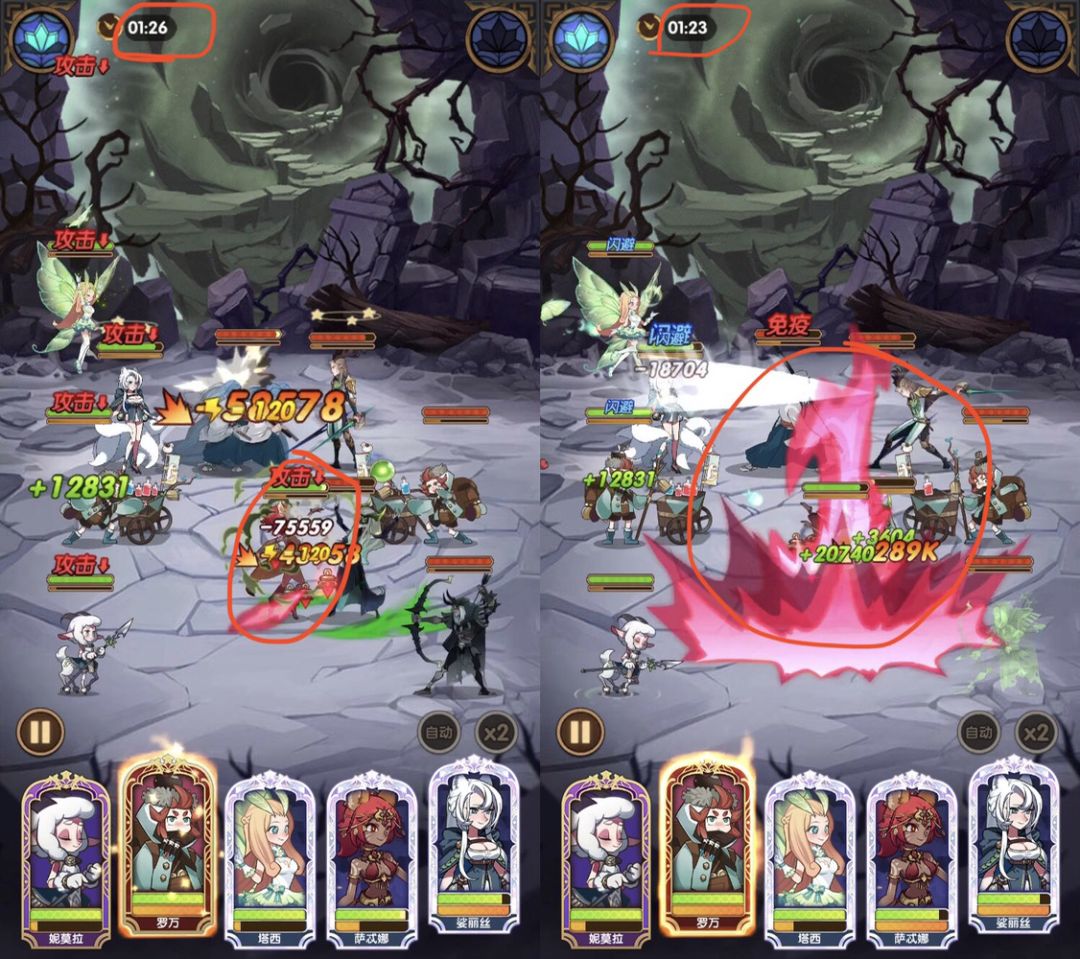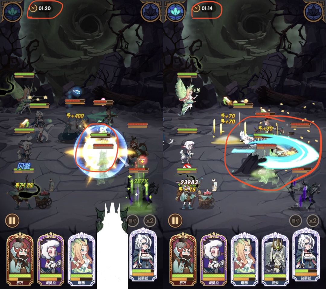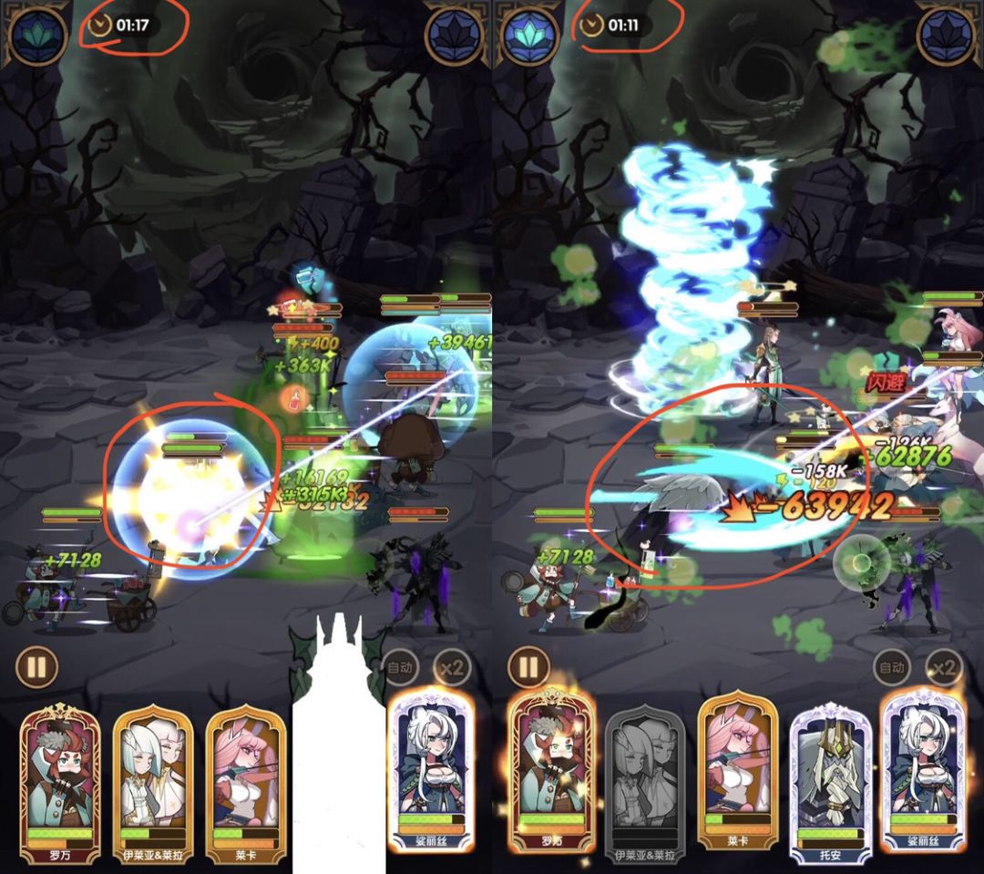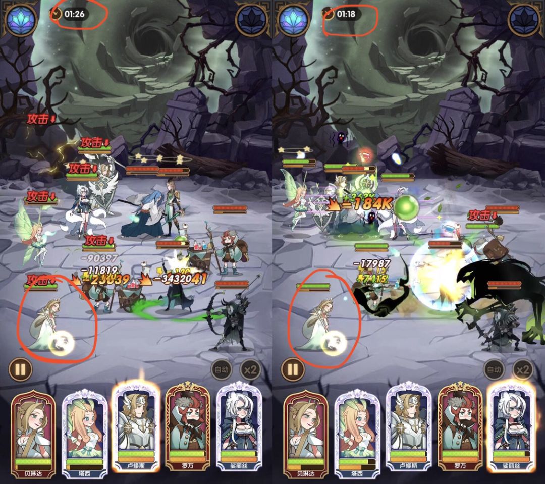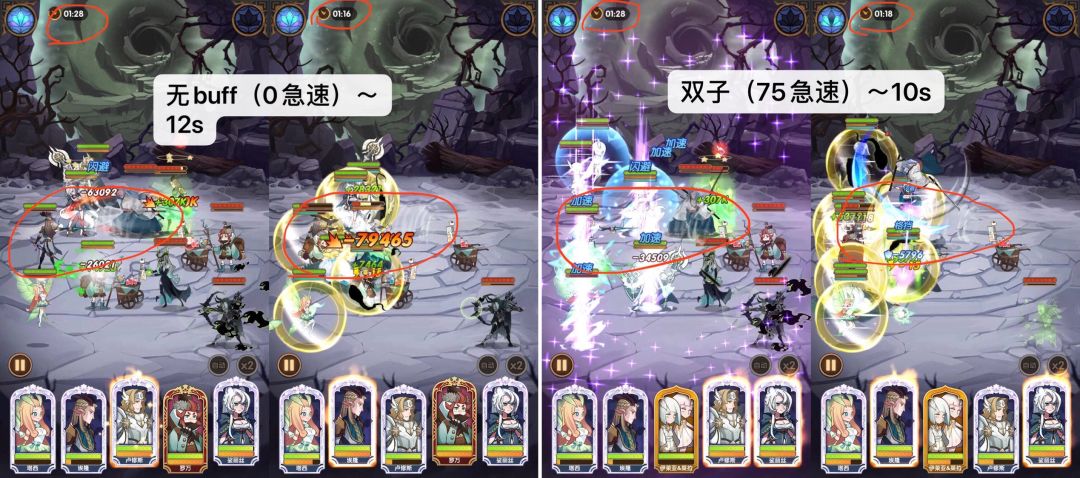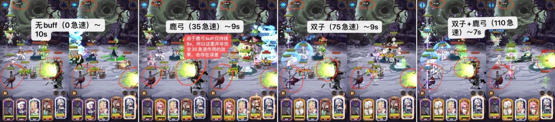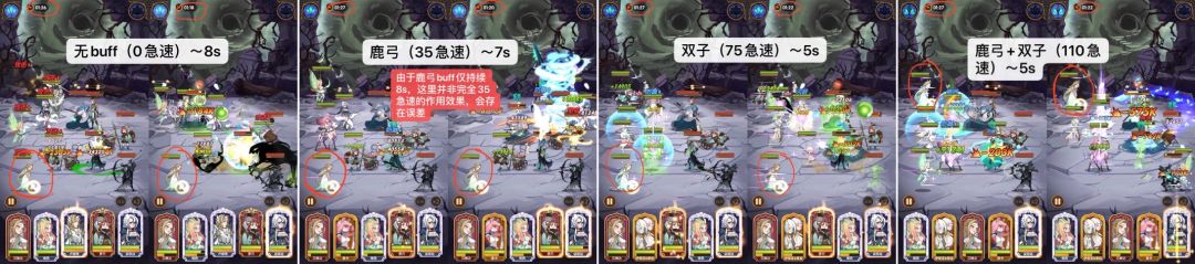 可以看到图1是无任何减速影响下,敌方女妖吸血的CD为10s在图2猴子与沙雕的减速影响下,敌方女妖的吸血CD被延长为12s可以得出减速就是减急速的效果,而非仅减攻速 同理加速即为加急速(由于游戏内描述为加速的buff比较少而且幅度太低,截图表现效果较差,所以这里就仅用减速的图片举例了)