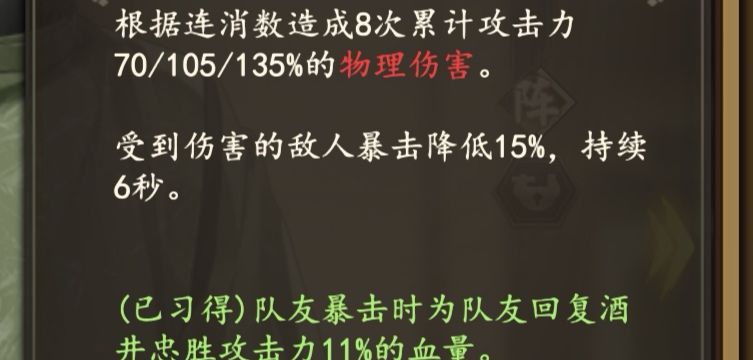 三消例如光国,有人分不清光国技能,孤妙斩有80%暴击伤害加成,但那个是格挡后触发的技能,并不属于三消