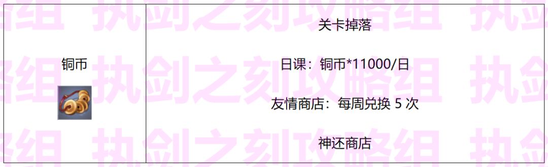 (列表出自执剑之刻攻略组)