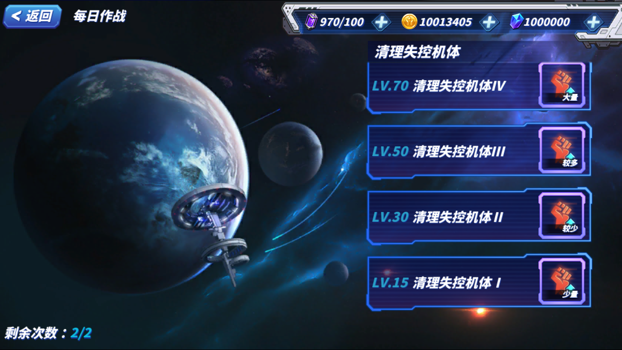 《未来机甲决战》每日作战是每个机长大人必玩的PVE之一,可以收集许多机师、机甲培养和提升的材料,以及培养点加成的材料等。下面就为大家介绍这个每日作战系统的玩法。