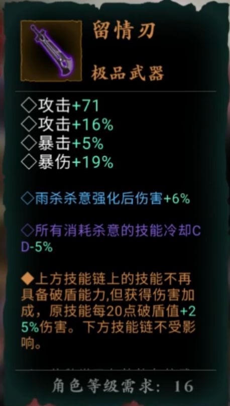 其余的装备,均围绕技能【瞬杀】【雨杀】的伤害和破盾值进行堆砌即可