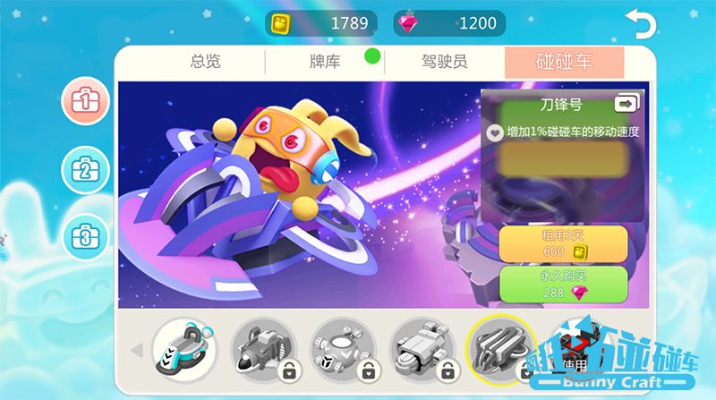 习惯疯狂飙车的老司机喜欢选择“刀锋号”,这款看起来很轻薄的碰碰车能增加一定的移动速度,但要小心速度太快翻车哦!