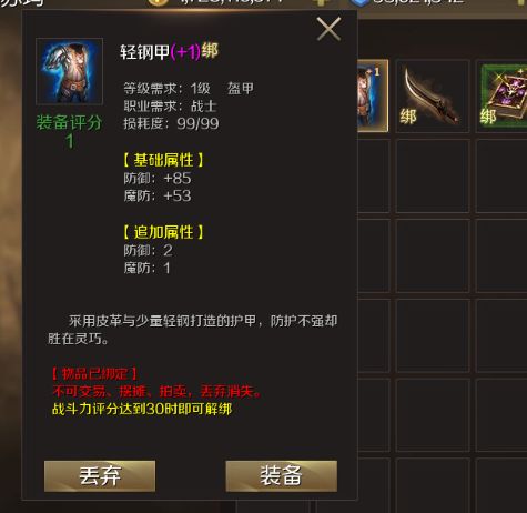 当获得未鉴定的武器或装备时,将待鉴定的武器或装备置于鉴定栏中点击“鉴定键”即可。鉴定成功后,隐藏的属性便会显现。