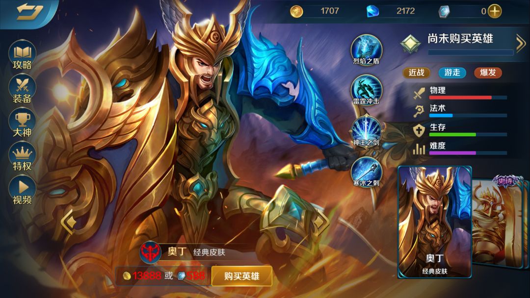 1、奥丁的大招是对手越残,伤害越高。所有我推荐的连招是2a1a3,伤害可以秒脆皮。