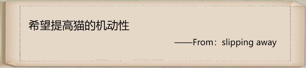 希望提高猫的机动性这一需求,其实和大家平时在说游戏中猫和老鼠的平衡性有一些关系,对这个玩家我理解的是希望猫变得更强一些,这个机动性是需要通过改变猫的速度和特殊的机制,来提高猫整体的胜率。