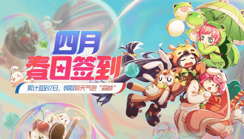 风雨终会过去,春天已然盛放,四月主题签到开启!累计登录7日即可获得聊天气泡“森林”,一起去踏青吧~