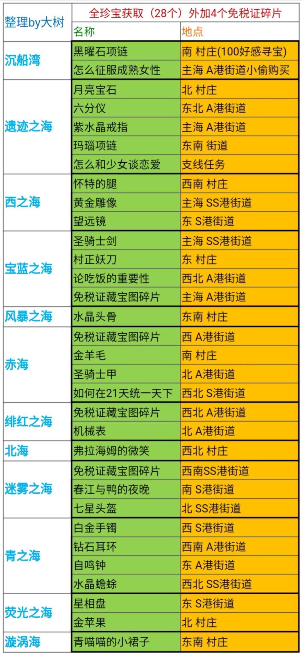 表中村庄是指需要给当地土著食物将好感度刷到100点击寻宝获得。
