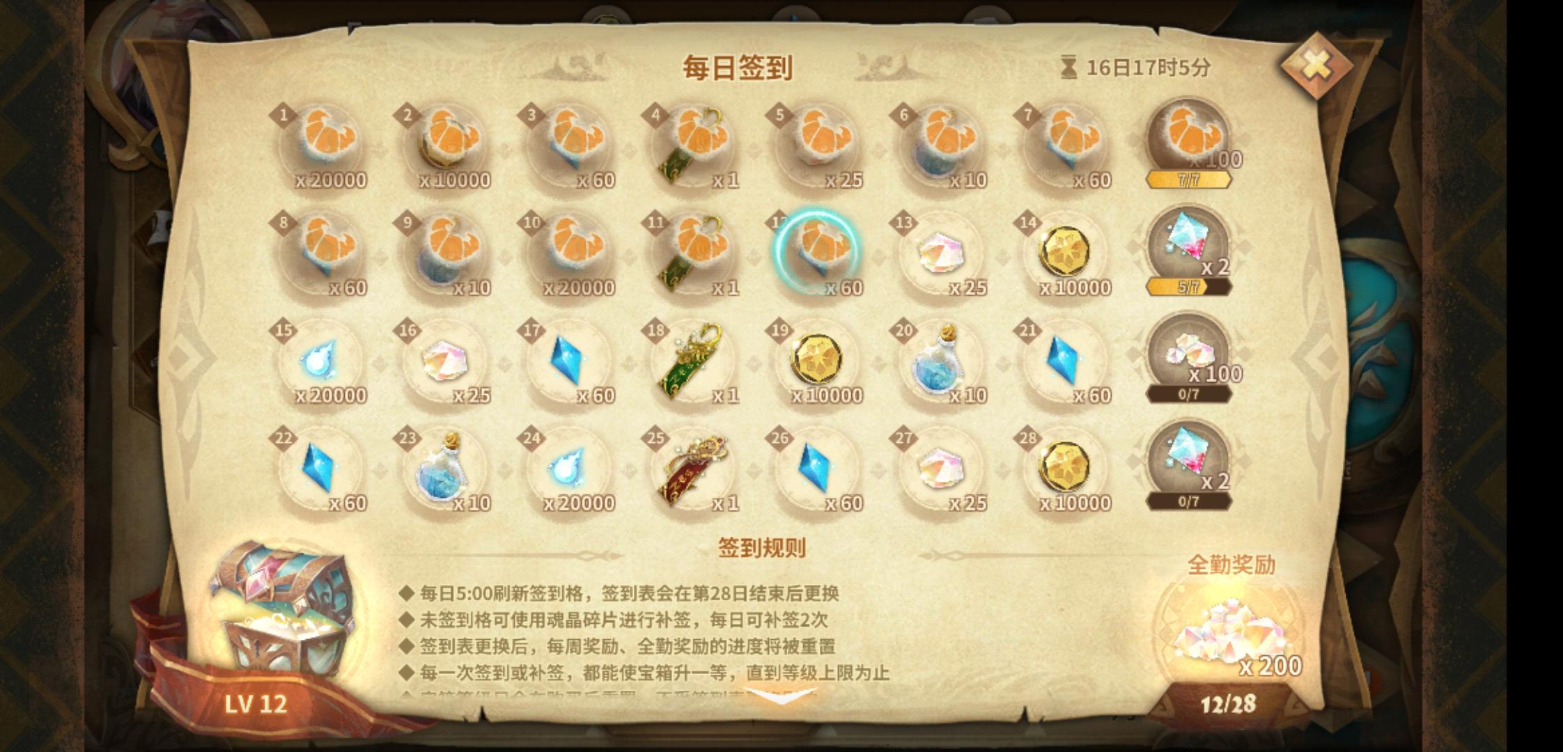 签到宝箱: 新出来的签到系统真的是太棒啦!!宝箱25满级,每天坚持签到获得大量,注意是大量快乐石,可以看到右下角的全勤奖励给200快乐石!同时,购买18软妹币的宝箱给的奖励也是非常诱人。我没仔细数有多少,但是应该够你抽一发500,和至少一个皮肤的蓝碎。