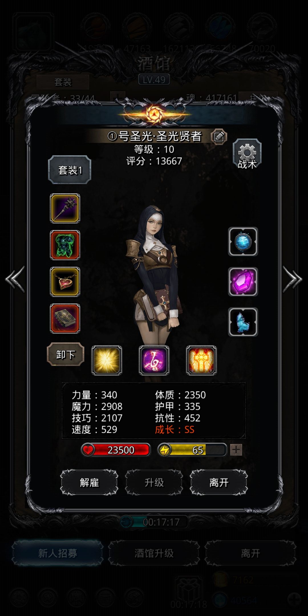。简单算下伤害跟回血后,双奶双输出应该会扛不住。不得不使用独裁枪增加技巧,减轻奶量压力。黑暗生物输出首选火刑。没有的用剑豪也可。圣光类因为武器太差没有可能上场。
