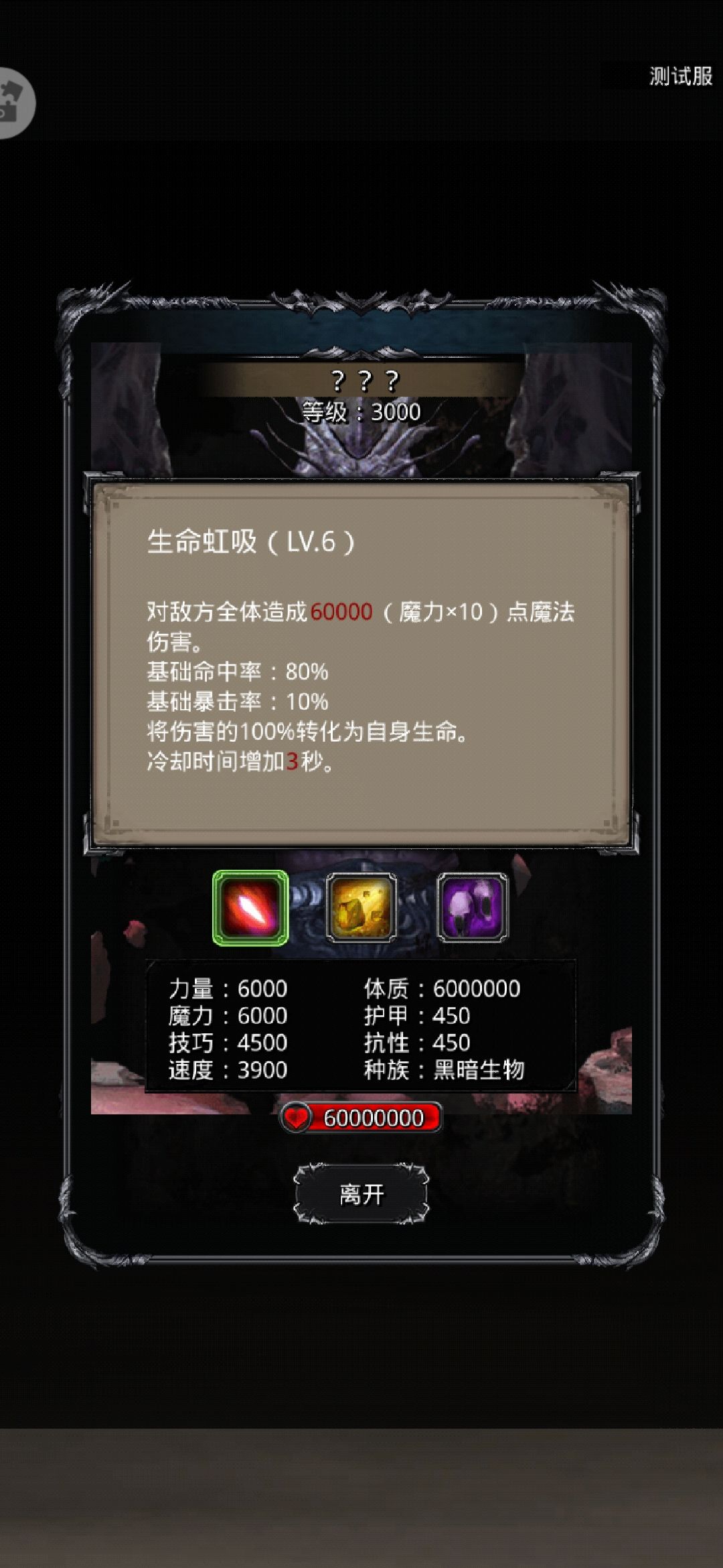 boss一轮技能15秒。物伤45000,魔伤90000。80%抑制治疗相当于伤害放大五倍。可以发现,这个古神比骨头龙伤害还恐怖(骨头龙是360000魔伤)