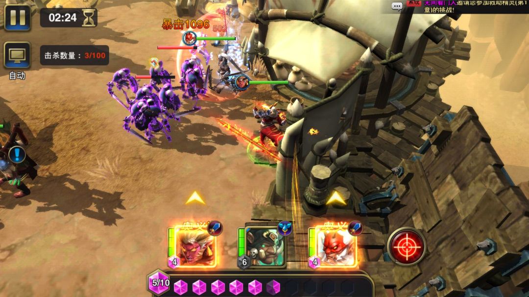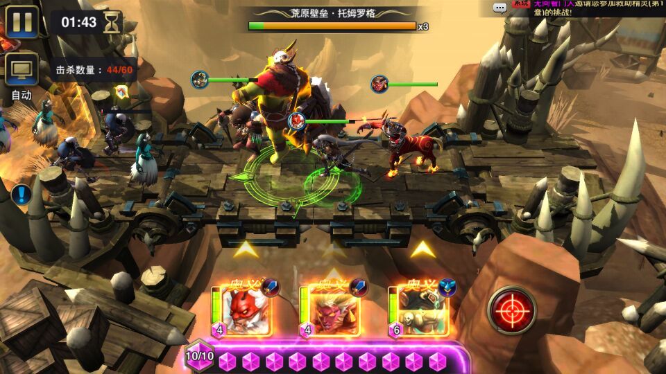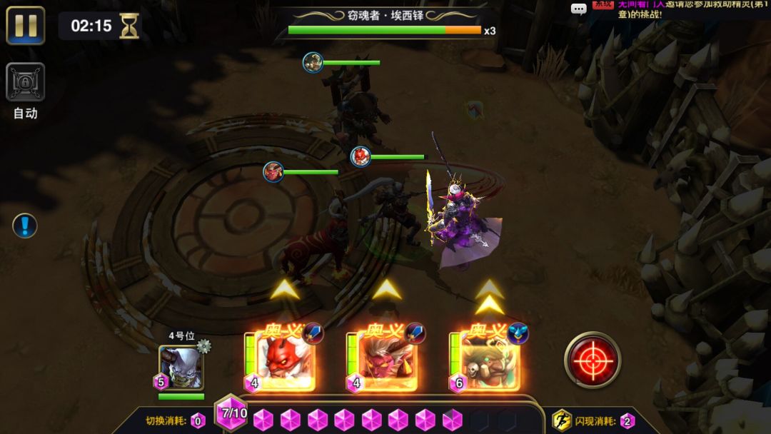 全程自动,提高我方队伍角色位于保护对象前方的几率,注意保护对象血量,同时尽量在敌方人数较多时使用人马奥义以节省费用(约四人以上)