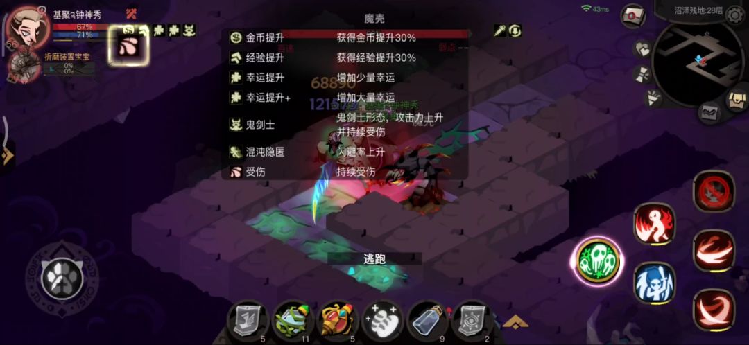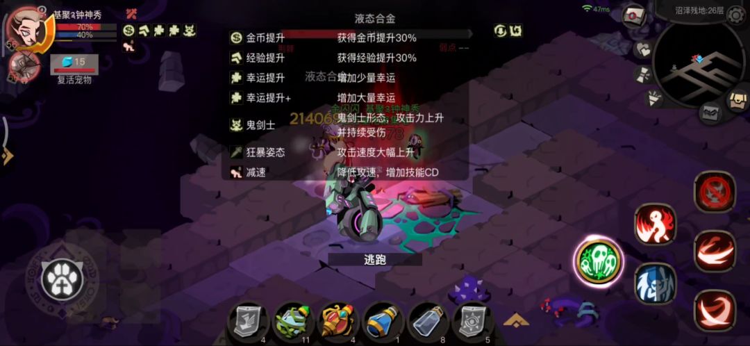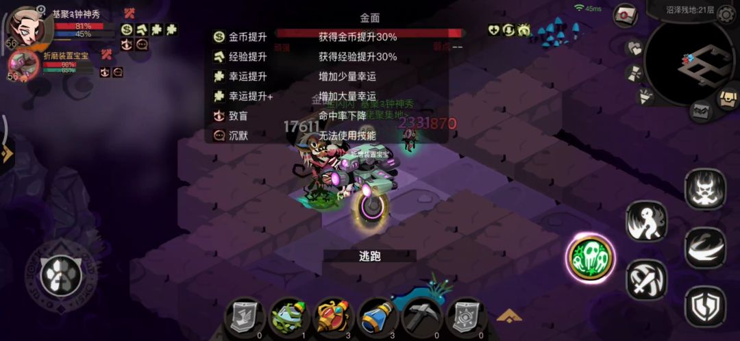 推荐天赋免费药水,没有就全清前几层多刷净化和安定。第21层金面