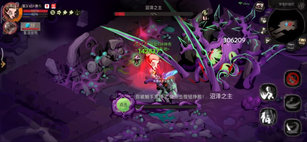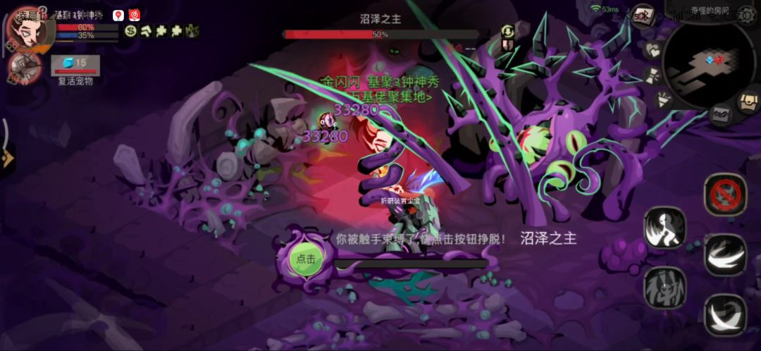 开局一个高额伤害加上疲劳debuff(受到伤害增加),每十秒释放一次。血量到达80% 60% 40% 20%会放眩晕加中毒,眩晕会有明显的蹲下起跳动作。