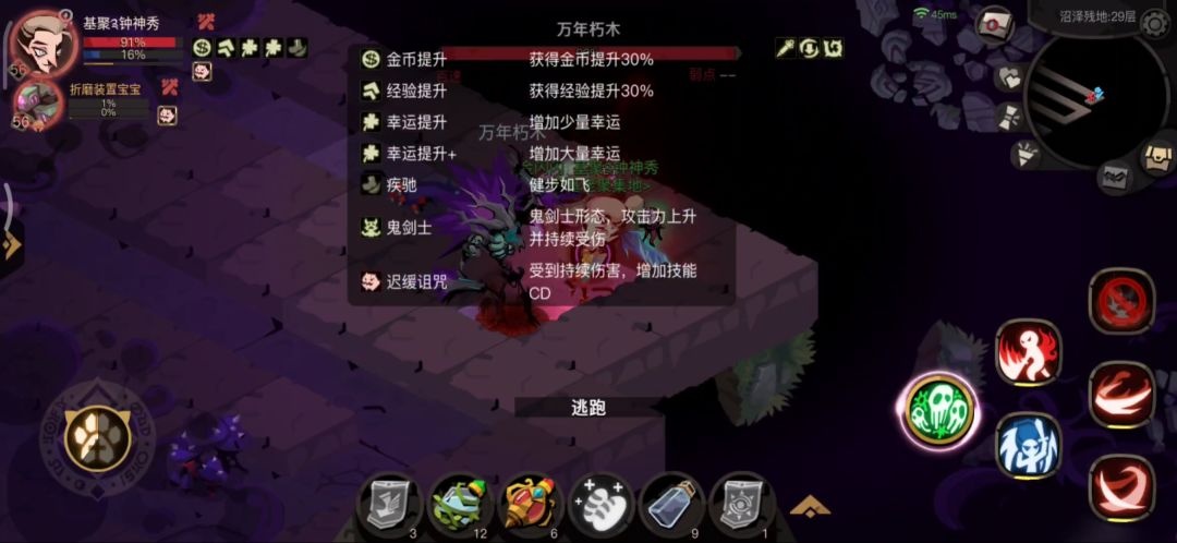 第29层万年朽木普攻反木伤(伤害很高),开局给迟缓诅咒debuff,攻击8次再加一个。加了迟缓诅咒debuff的时候它a一下会抬一下手,同时造成伤害。29补充:周期性会出现一个类似于19守门飞碟的破釜沉舟buff的图标(破釜沉舟buff:造成伤害增加受到伤害减少,该buff会去除安定、大剑的暴怒威慑、法师的祸源)。