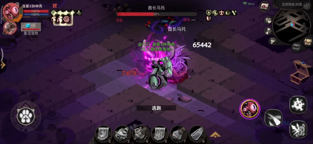 开局一个高额伤害,攻击9次再释放一次,另外守门还有一个养分流失debuff技能。建议打第七层先看词条,词条为锋锐则先刷9只小怪开启守门员,如果交了魂器则还能全清剩下几层来刷新魂器。