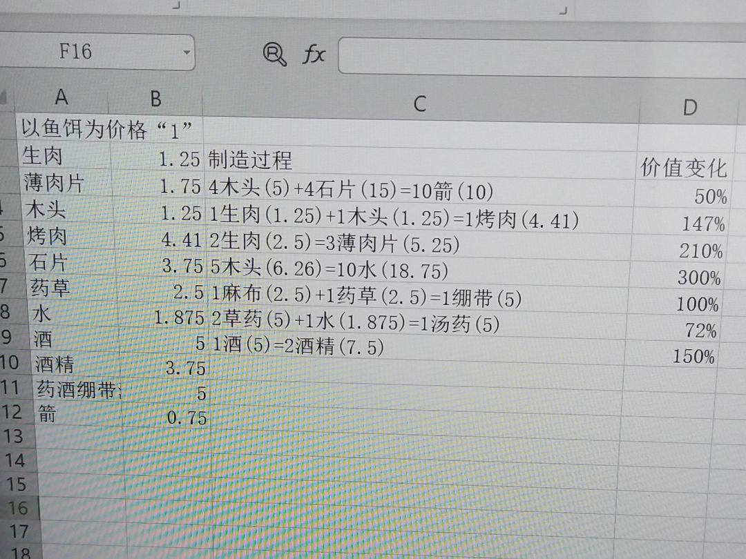 由于闲得蛋疼,昨天带着万人迷去第二关找威利老头测算了一下物品交易价值。拎出一部分比较有意思的分享一下(分享内容里面都是无偏好的价格)
