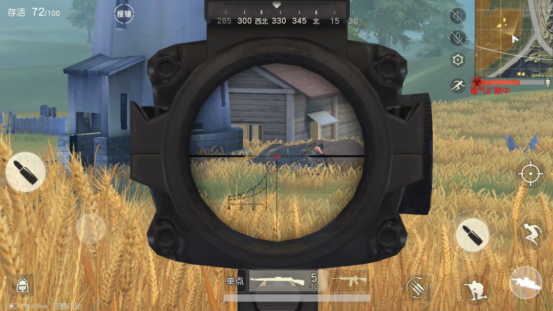 荒野里视野范围很大,这样带来的射击体验就挺好的。比如用8倍镜的时候,清晰度也很高,基本没有马赛克的感觉,趴在草丛里偷袭就特别爽。还值得一提的是,当使用倍镜的时候,瞄准还可以通过重力感应来控制,挺好用也不会太晕。