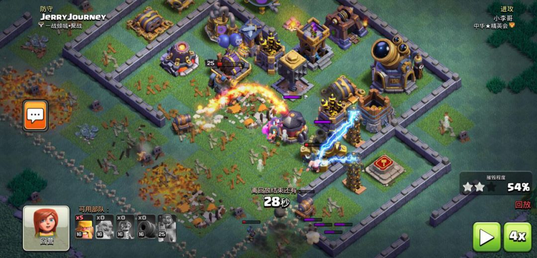 流派玩法:进攻上流派的平推力度很大,切入点可以选择撼地巨石的边侧位置,之后在安全位置优先打出炸弹兵爆破对手的城墙,在炸弹兵攻克外部后,可使用多个分散的拳击手在前排,用于抵挡火力和针对防守建筑输出。火力被吸引后,可打出战车在后排提供输出支援,同时搭配,进攻的同时使用狂暴野蛮人辅攻推进。