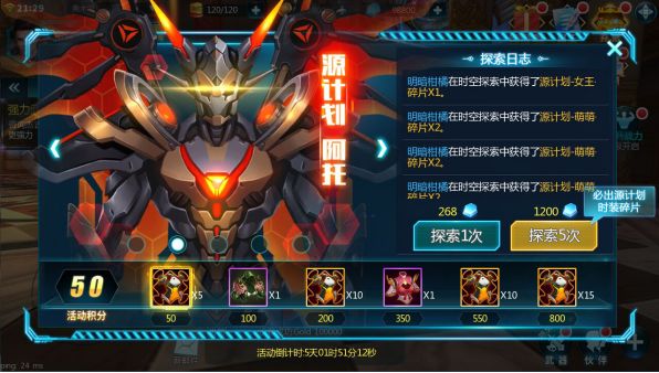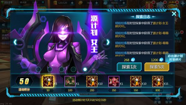 2. 每次探索必得时装碎片,并且获得一定的活动积分,积分可兑换终极时装大奖