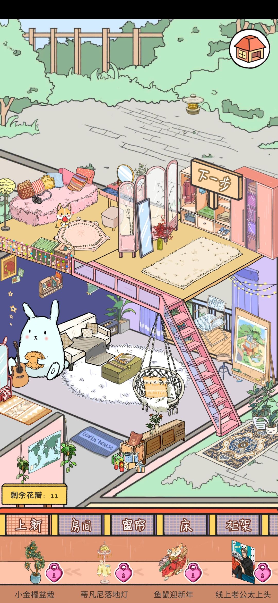 我又来更新啦,每天早上都会给小屋重新装修,真喜欢这个游戏!