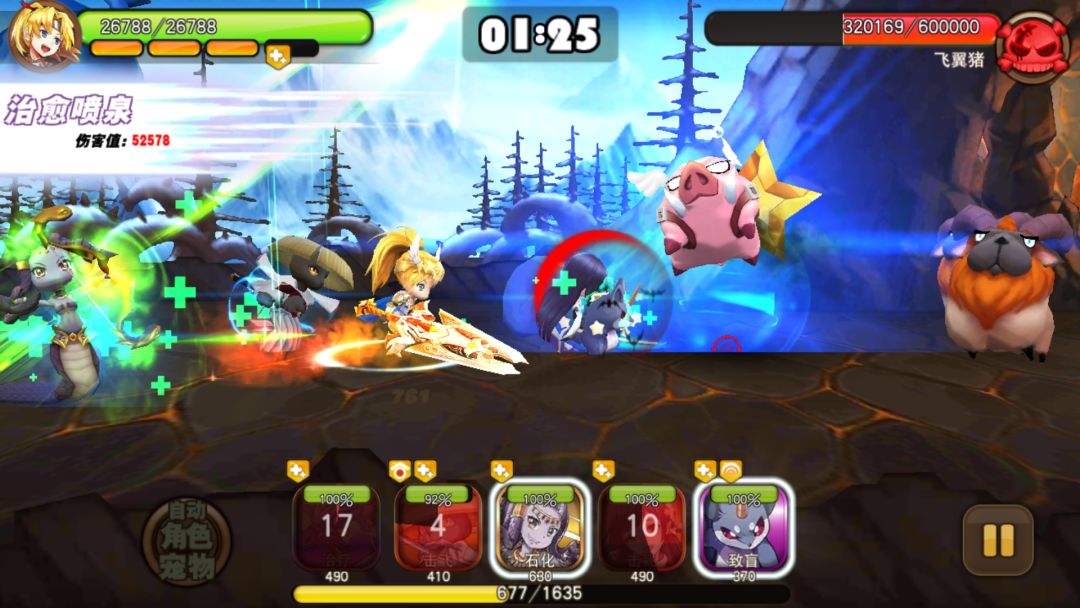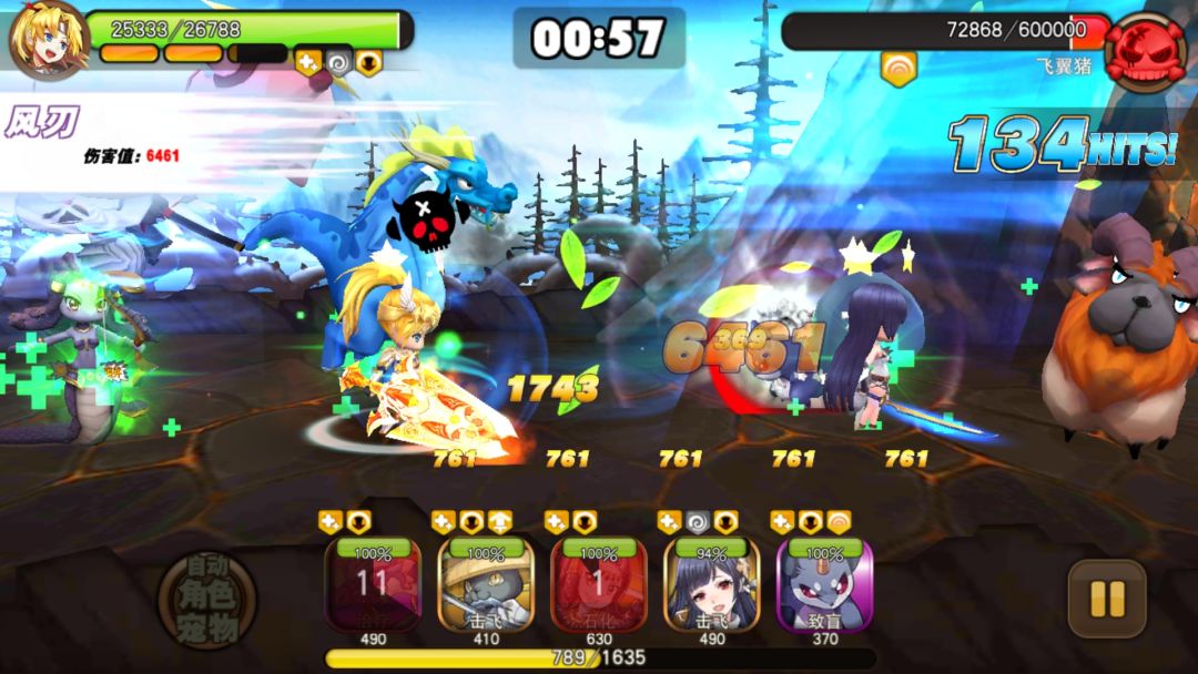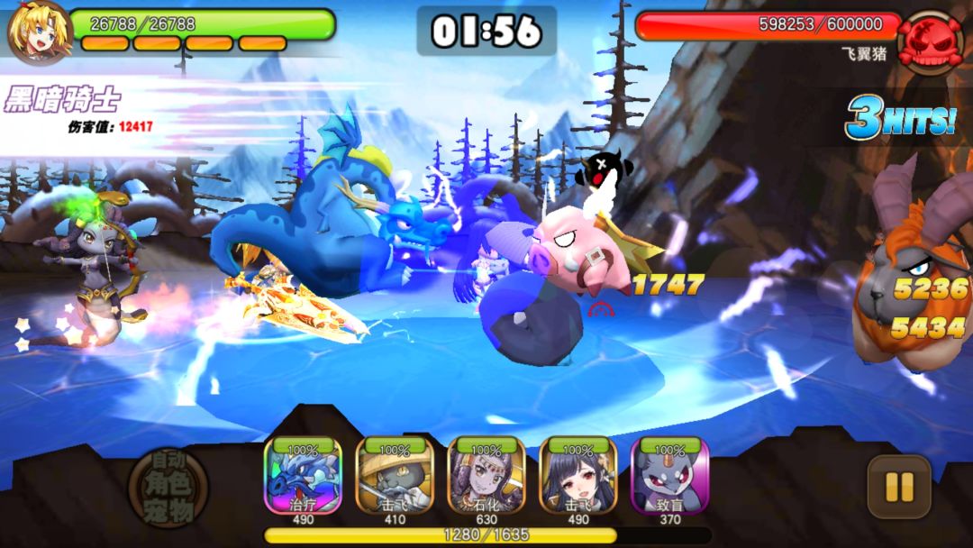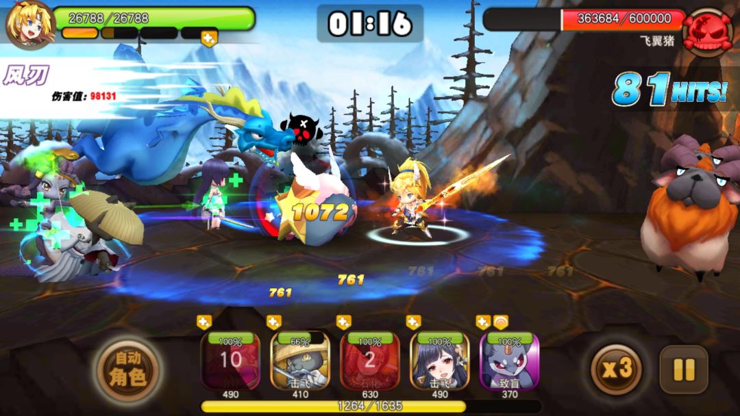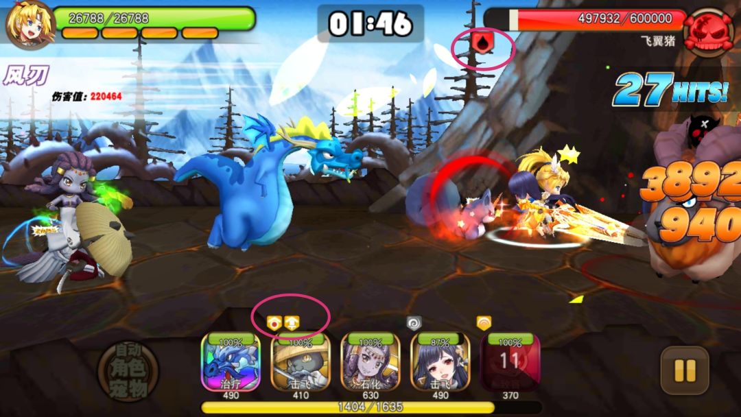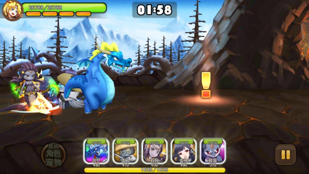 举个栗子,我的队伍由老鼠 美杜莎 飞翼猪 冰骑士 水龙 那么在1倍速的情况下,我们需要在开场第一个感叹号结束的时候,使用飞鼠的致盲
