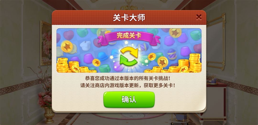 大师挑战为什么不给金币呐,那过了大师挑战也没什么奖励,没有任何意义呀。要不就金币,要不就快点更新新房间,行不行。