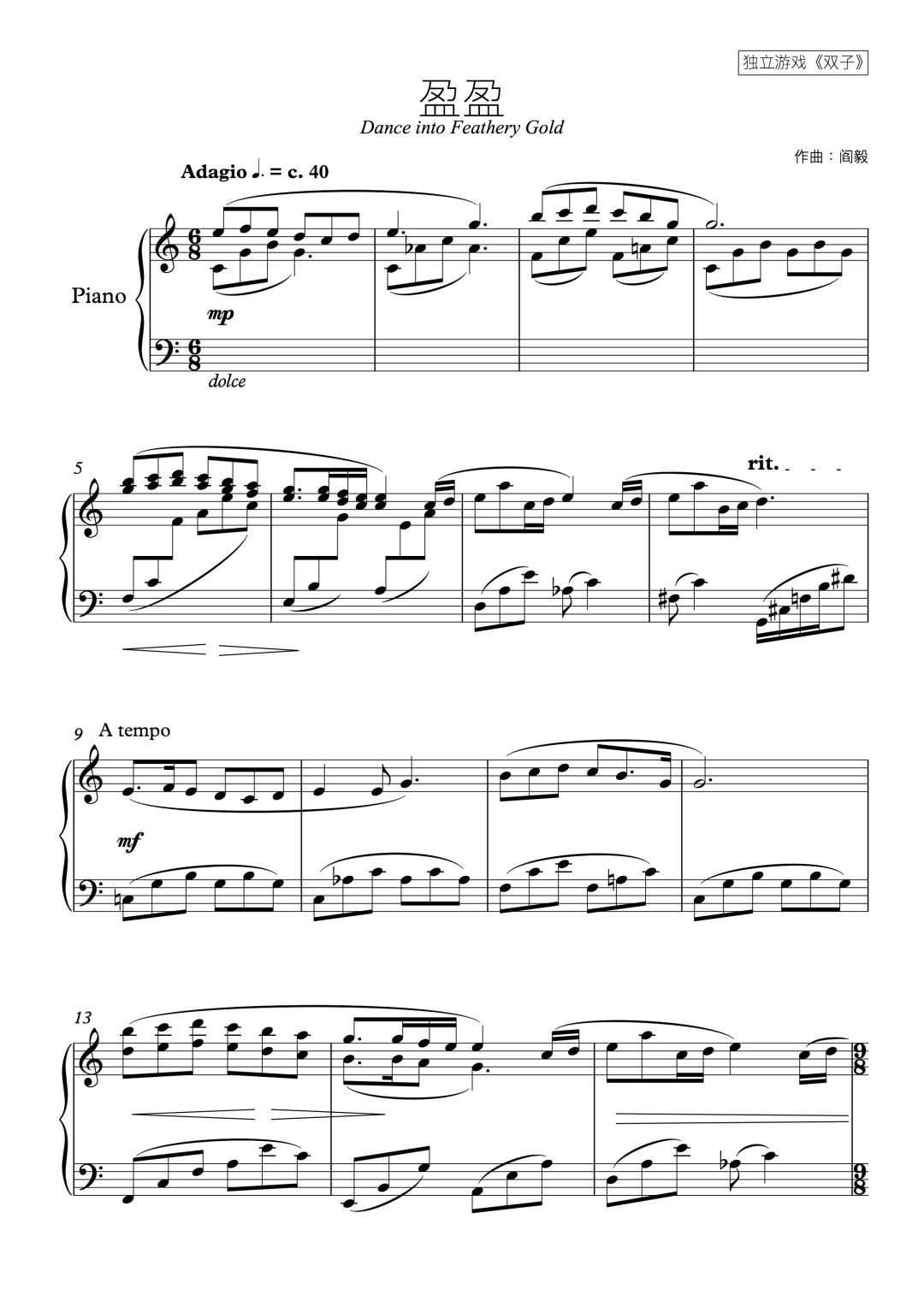 这里奉上第二关的钢琴曲乐谱,有兴趣演奏的朋友可以拿去弹了~