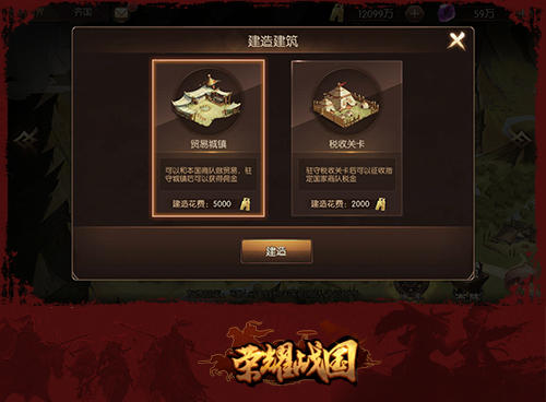 做好了防御工作接下里就要开始建设经营了,《荣耀战国》里的列国据点可以增建贸易城镇和税收关卡两种不同的经济建筑。拥有贸易城镇的据点可以和本国商队进行贸易,不仅有驻守收益,本国商队路过此处后还会增加结算收入,可以说是“一人建设,全国受益”的共享型建筑了。