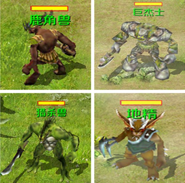 而野外就是大家练级的地方啦~一共有5个不同级别的怪,分别有:1级鹿角兽:5级巨杰士:7级猎杀兽:9级地精:13级龙怪: